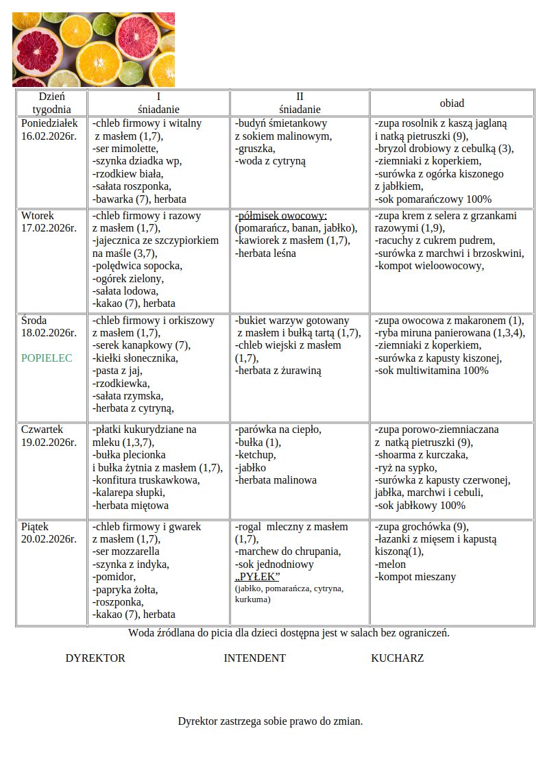 Jadłospis 16.02 – 20.02
