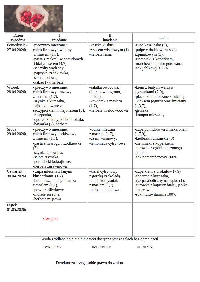 Jadłospis 27.04 – 1.05