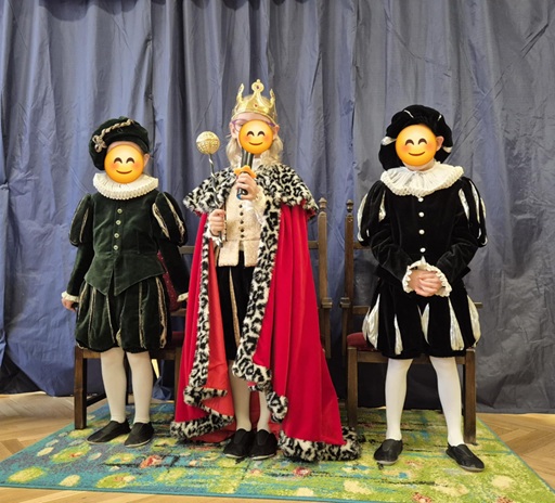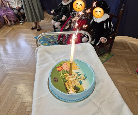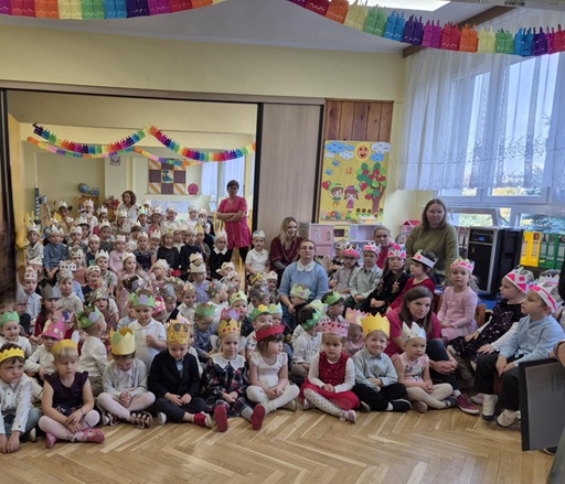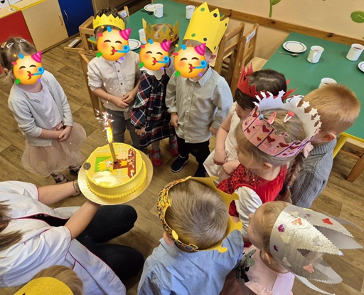 Tradycją w naszym przedszkolu stały się obchody urodzin króla Maciusia. Na urodziny każdy przedszkolak przyszedł w królewskiej koronie. Dzieci przygotowały dla naszego patrona niespodziankowe występy – śpiewały, tańczyły i grały. Nie zapomniały również o prezentach dla jubilata. W ramach podziękowań król zaprosił wszystkich na urodzinowy tort.